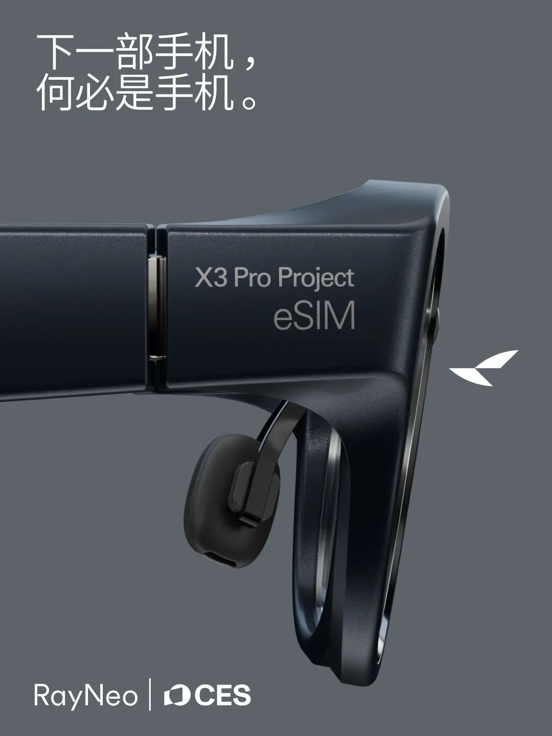 为此,雷鸟创新联合运营商已经成功攻克了微型化RF天线与超薄镜腿的融合难题。据称,在整机仅增加约2g重量的前提下,便实现了完整的eSIM通信功能,而这就是代表下一个AR眼镜时代的旗舰标品——雷鸟X3 Pro Project eSIM,产品将在CES 2026接受来自全球观众的考验。